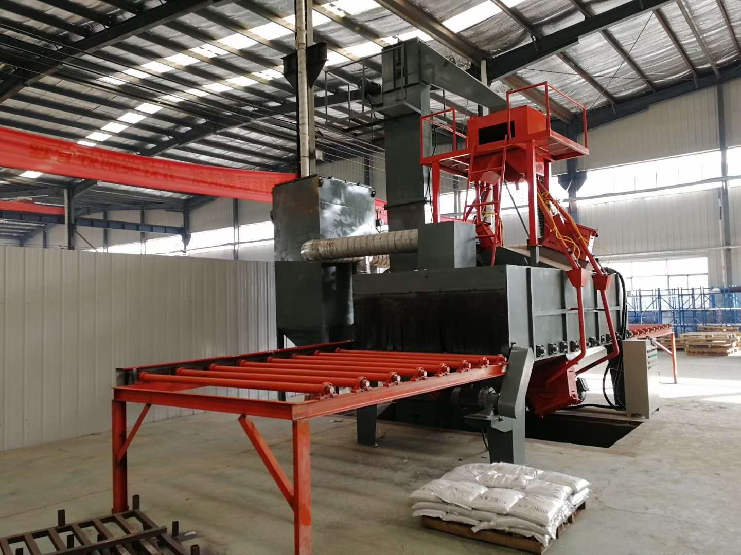 本機適用于鋼管外壁的拋丸清理,以去掉工件表面上的粘沙、鐵銹、氧化皮、污物等,使工件表面呈現金屬本色,工件內部應力,提高工件的性,達到提高工件表面及內在質量的目的,并 終提高機械產品和金屬型材的能力和鋼材的性能,延長其使用壽命;優化鋼材表面的工藝狀態,達到 清理的目的。 1采用離心懸臂式新穎 多功能拋丸器,拋丸量大,,葉片 換,具有整體 換之性能,維修方便。